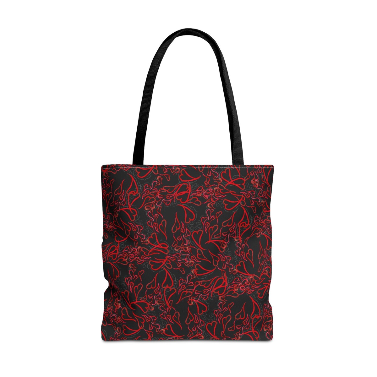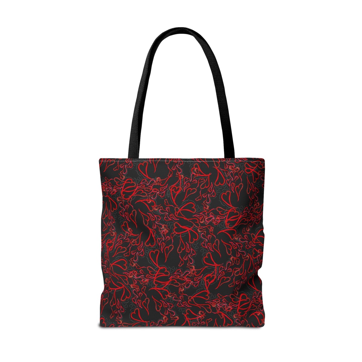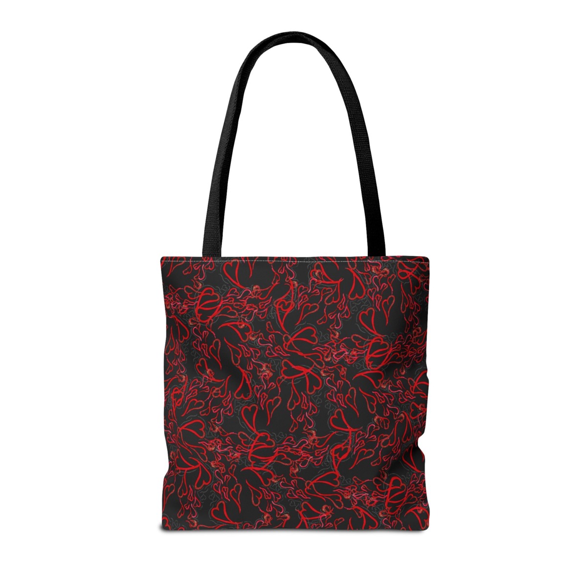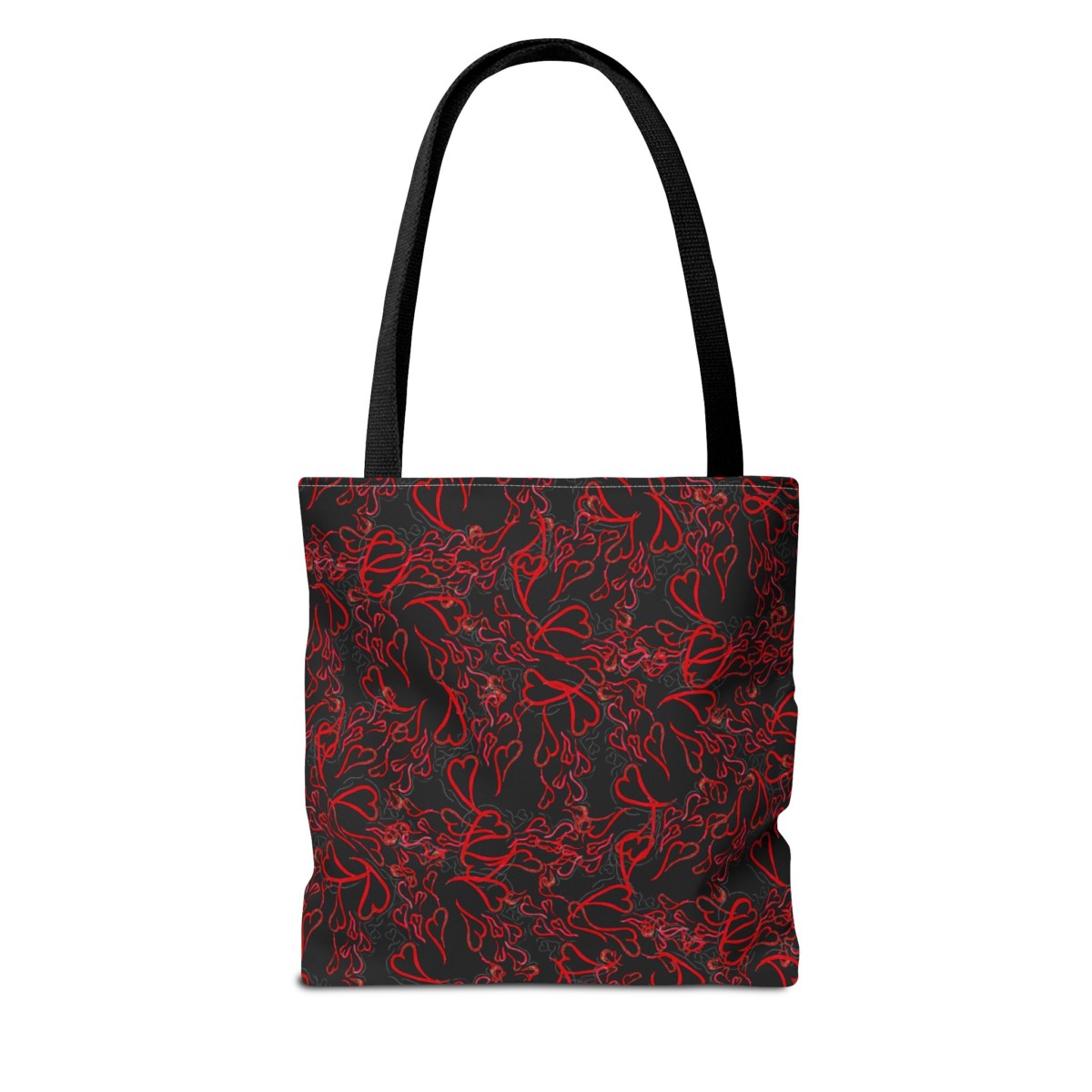 Michelle Valentine “Flying Hearts” Tote Bag (black) is a chic and spacious carryall featuring eye-catching original artwork by Michelle Valentine. With durable construction and comfortable handles, this stylish black tote is perfect for travel, errands, work, or everyday use—bringing a bold, romantic flair and artistic energy to your look.